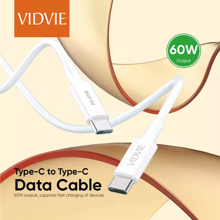 VIDVIE PD 60W Fast Charging Mobile Phones Chargers Cable Ladekabel 1M White Black Type C to Type C Data Cable Chargeur Telephone