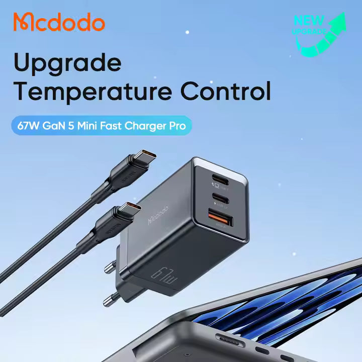 Mcdodo 154 70W GaN USB C Charger Kit With Cable 36W C to L 1.2M PD3.0 QC4 2C1U Type-C 67W Charger for Laptop Tablet Mobile Phone