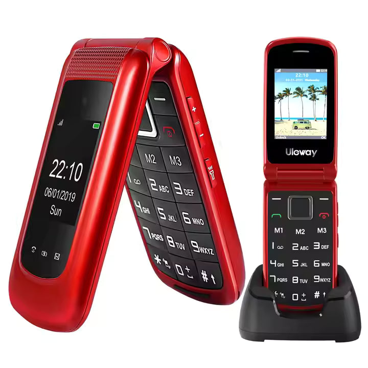 Factory High Quality Unlocked 4g Bar Cell Phone Flip & 1.77+2.4'' Dual Display 4g Senior Mobile Phone Without Contract -Red